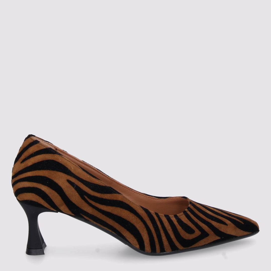 Decolletè Colore: Cuoio/Nero Materiale: Camoscio/Zebrato Tacco 5.5 cm gommato Suola: gomma antiscivolo Fodera: Pelle N.B realizziamo i...