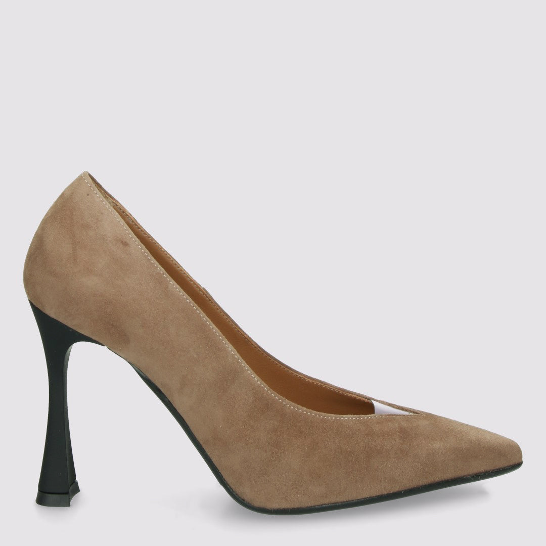 Decolletè Colore: Acero Materiale: Camoscio/Pelle Tacco 9.5 cm gommato Suola: gomma antiscivolo Fodera: Pelle N.B realizziamo...