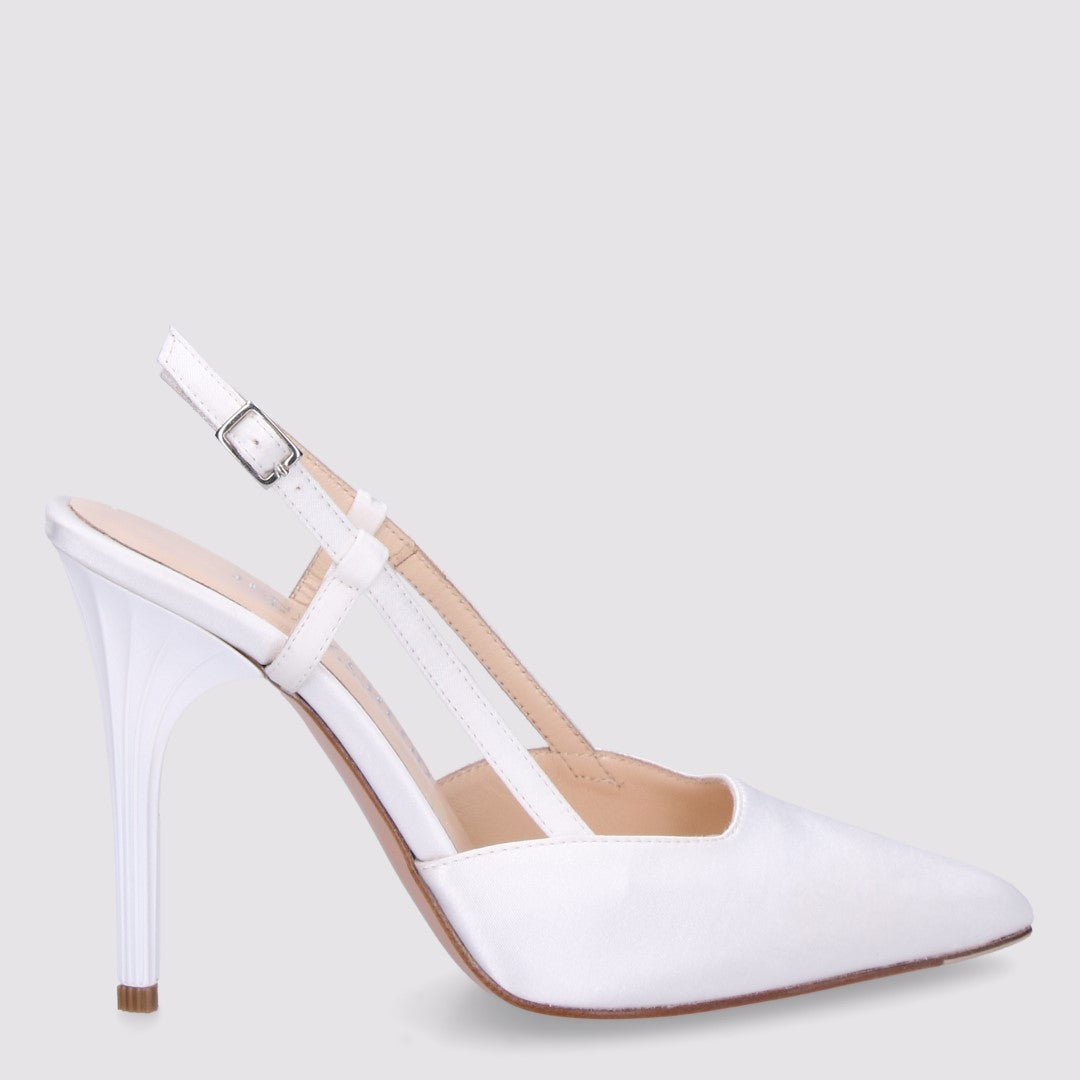 Slingback Colore: bianco Materiale: raso Tacco 9.5 cm raso Suola: cuoio bianco antiscivolo Fodera: pelle N.B realizziamo...